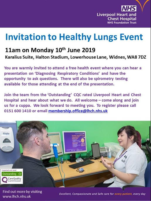 Join the team from the ‘Outstanding’ CQC rated Liverpool Heart and Chest Hospital and hear about what we do. All welcome – come along and join us for a cuppa. We look forward to meeting you. To register please call 0151 600 1410 or email membership.office@lhch.nhs.uk