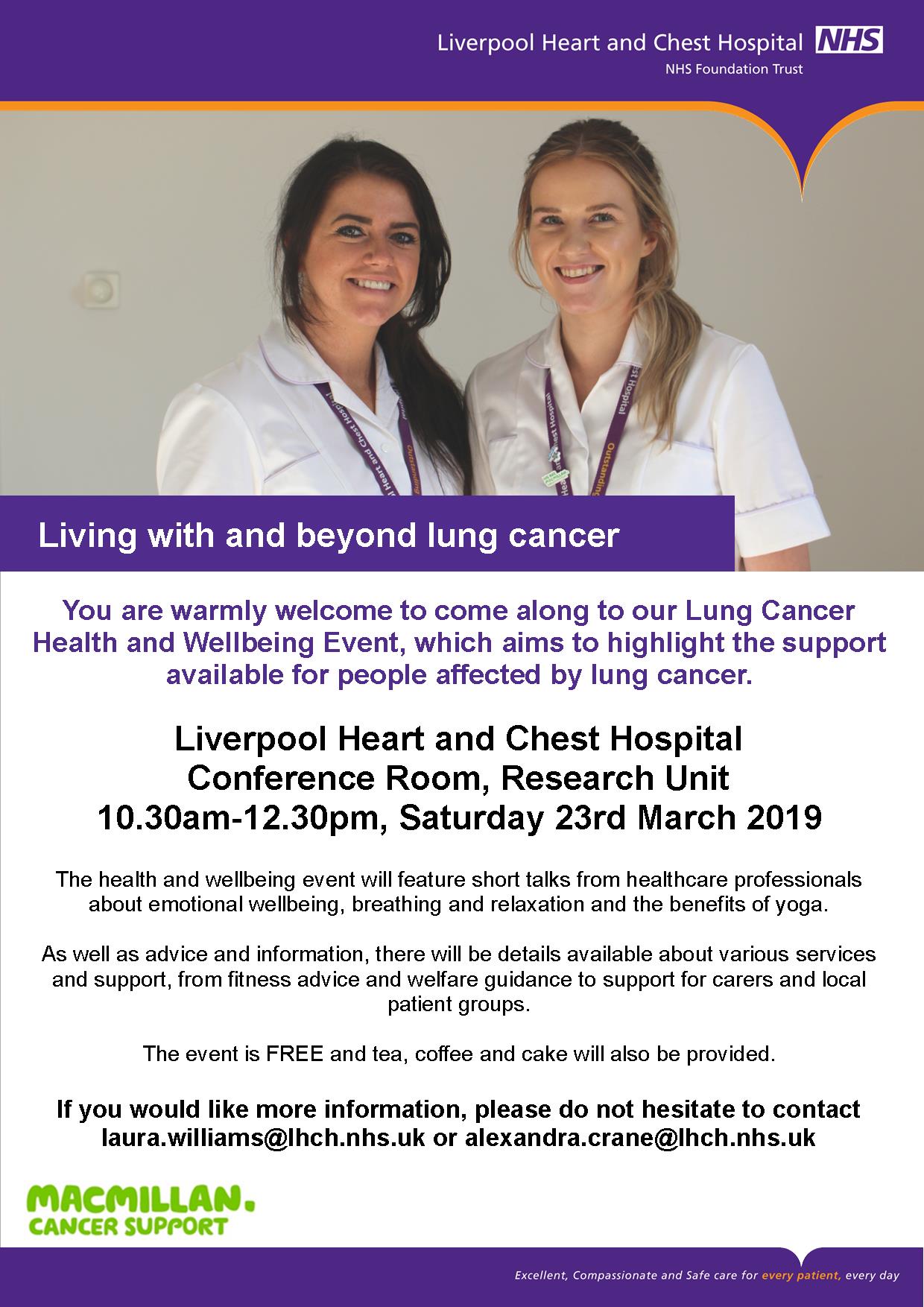 You are warmly welcome to come along to our Lung Cancer Health and Wellbeing Event, which aims to highlight the support available for people affected by lung cancer.