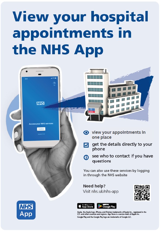 The NHS App can be downloaded via the Apple and Google Play stores. These services can also be used by logging in through the NHS website. For more information about the NHS App please visit www.nhs.uk/nhs-app